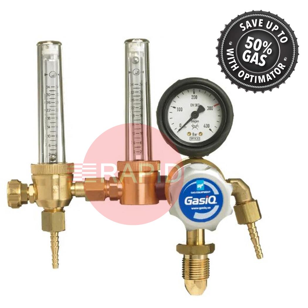 GasIQ Optimator II is a special version of GasIQ’s Optimator with an extra outlet for backing gas. This regulator is used primarily in welding operations where both the shielding gas and backing gas are to be taken from a single gas cylinder. It provides the same shielding gas savings as the GasIQ Optimator above. In purely practical terms, one of the benefits is that in operations such as pipe installation work, fewer gas cylinder changes are required.