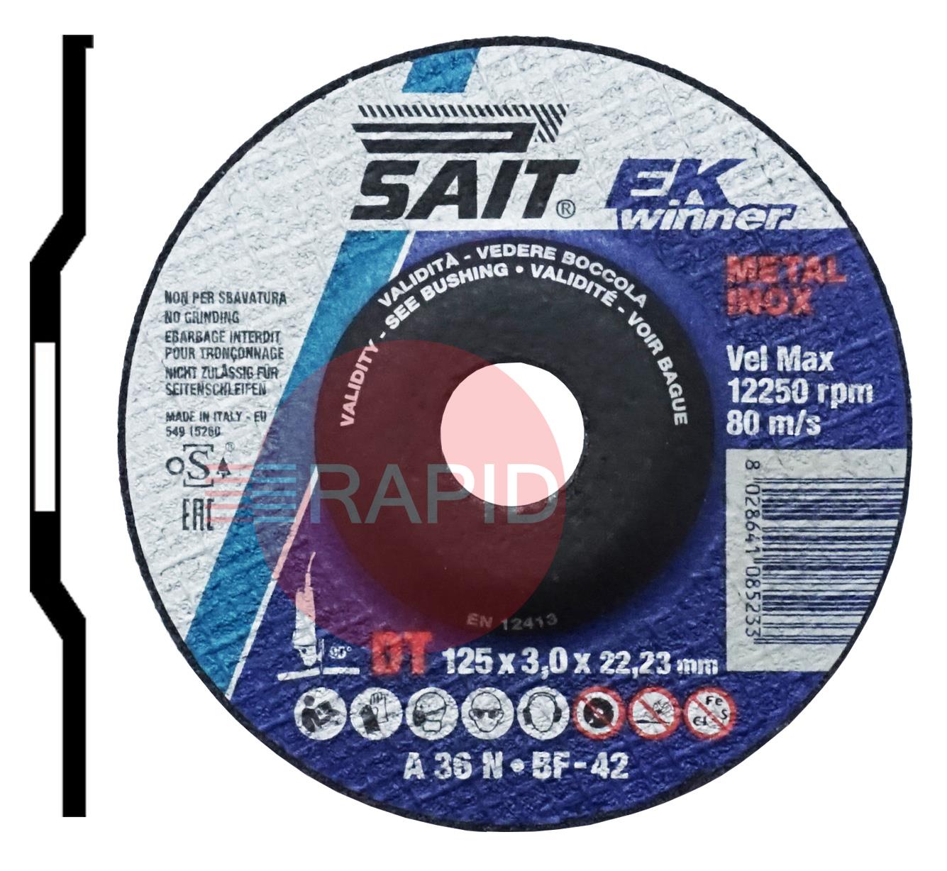 SAIT EK Winner-DT 125mm (5") Depressed Centre Cutting Disc 3mm Thick - Grade DT A 36 N
