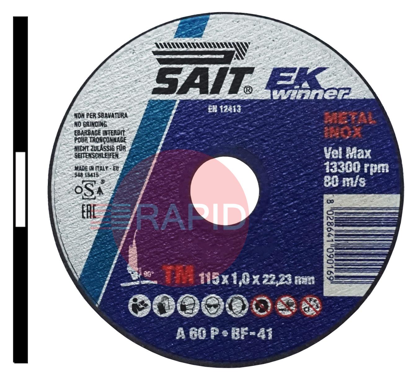SAIT EK Winner-TM 115mm (4.5") Slitting Cutting Disc 1mm Thick - Grade TM A 60 P