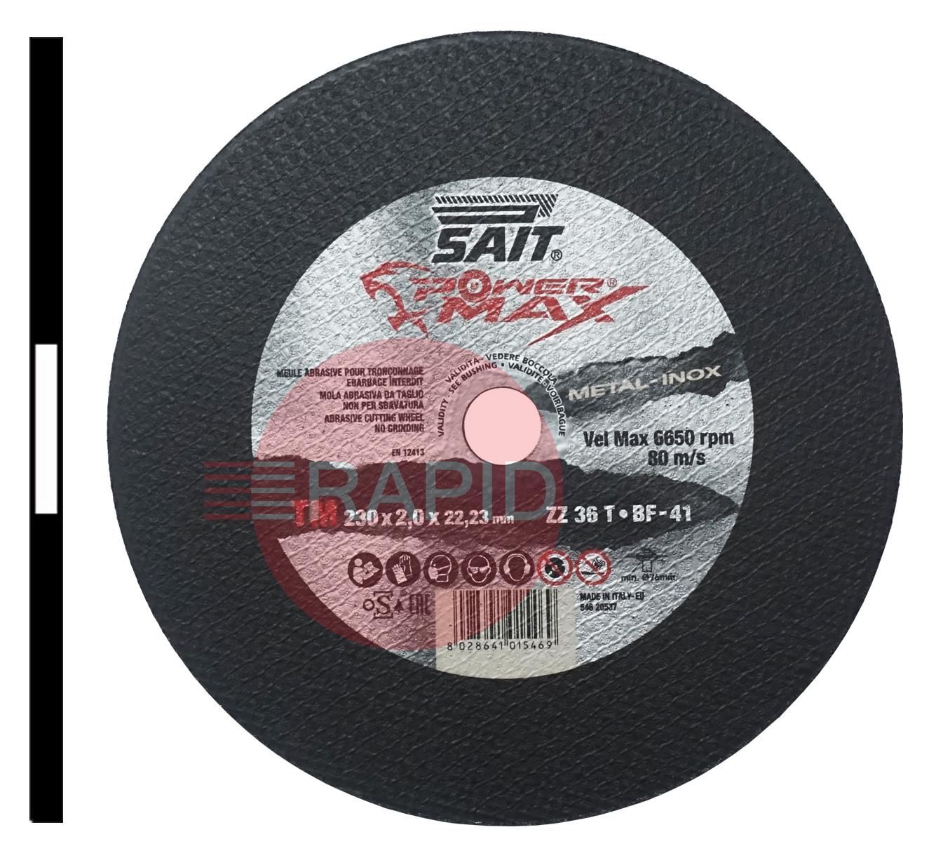 SAIT Powermax-TM 230mm (9") Slitting Centre Cutting Disc 2mm Thick - Grade TM ZZ 36 T