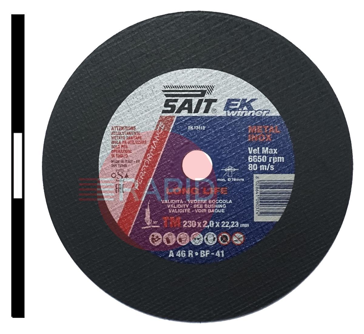 SAIT EK Winner-TM 230mm (9") Slitting Cutting Disc 2mm Thick - Grade TM A 46 R