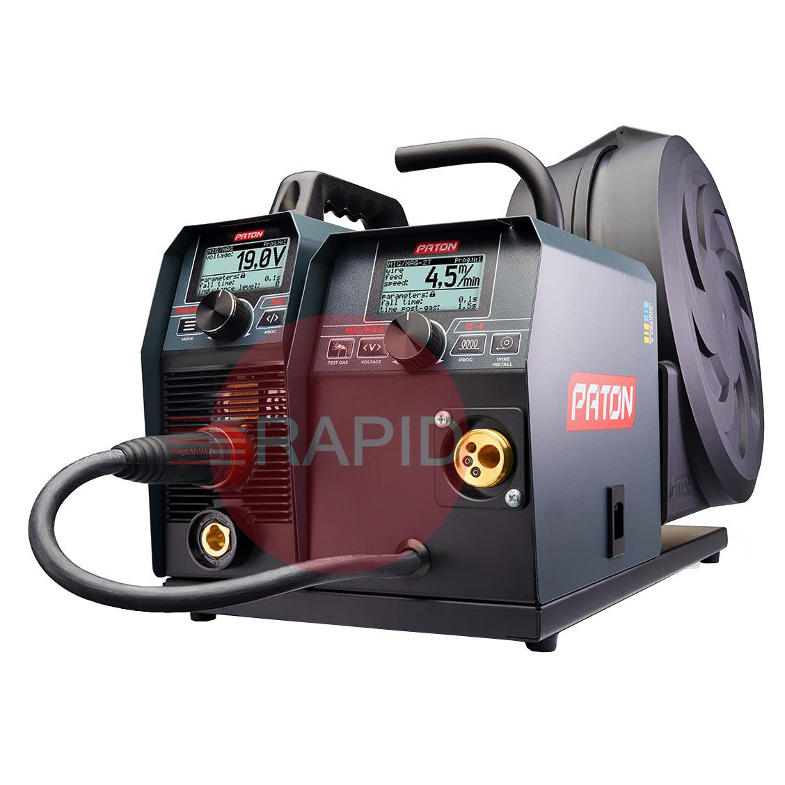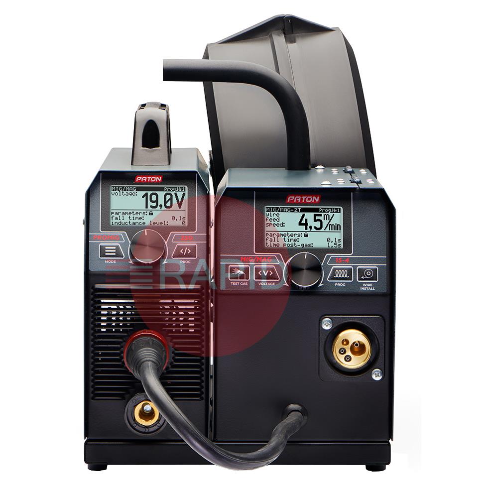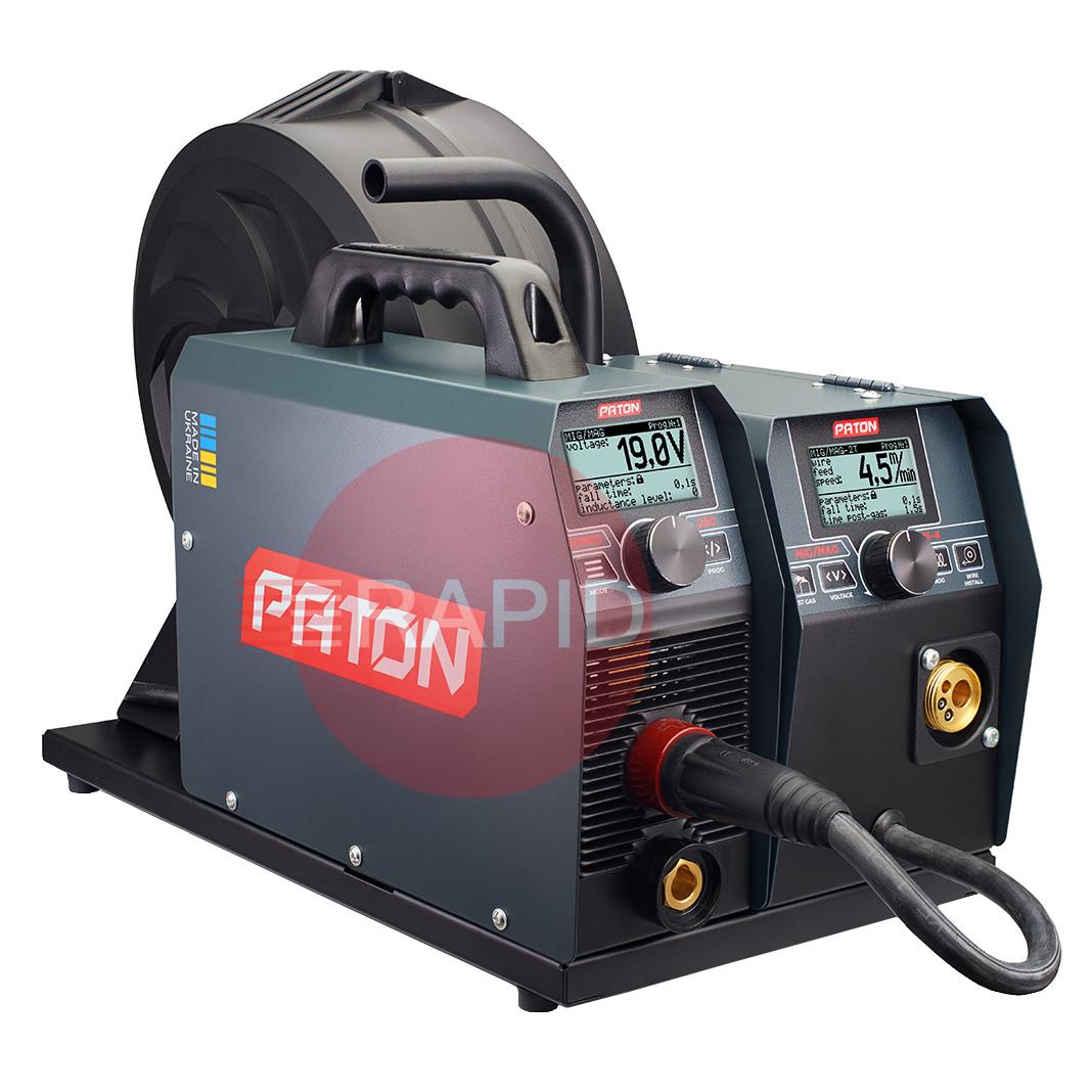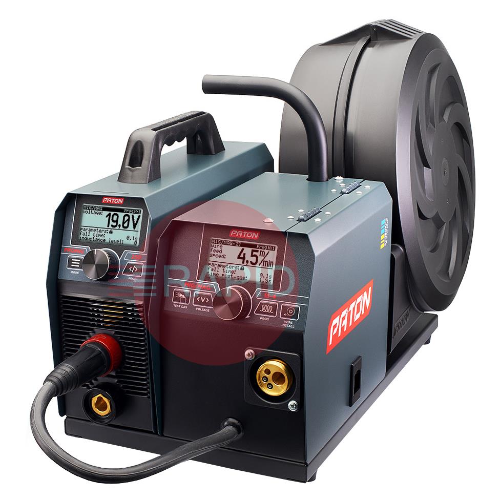 The PATON ProMIG 250 is designed for direct current welding of a wide range of materials in MIG/MAG, MMA and Lift TIG modes. The PATON ProMIG welding machines are designed for professional use. The welding current source can be used separately from the wire feeding unit in order to provide ease of operation in MMA and TIG modes and provide compliance with safety requirements in some welding cases. These machines are operated from a 230V single-phase power supply and have an IP33 protection rating.