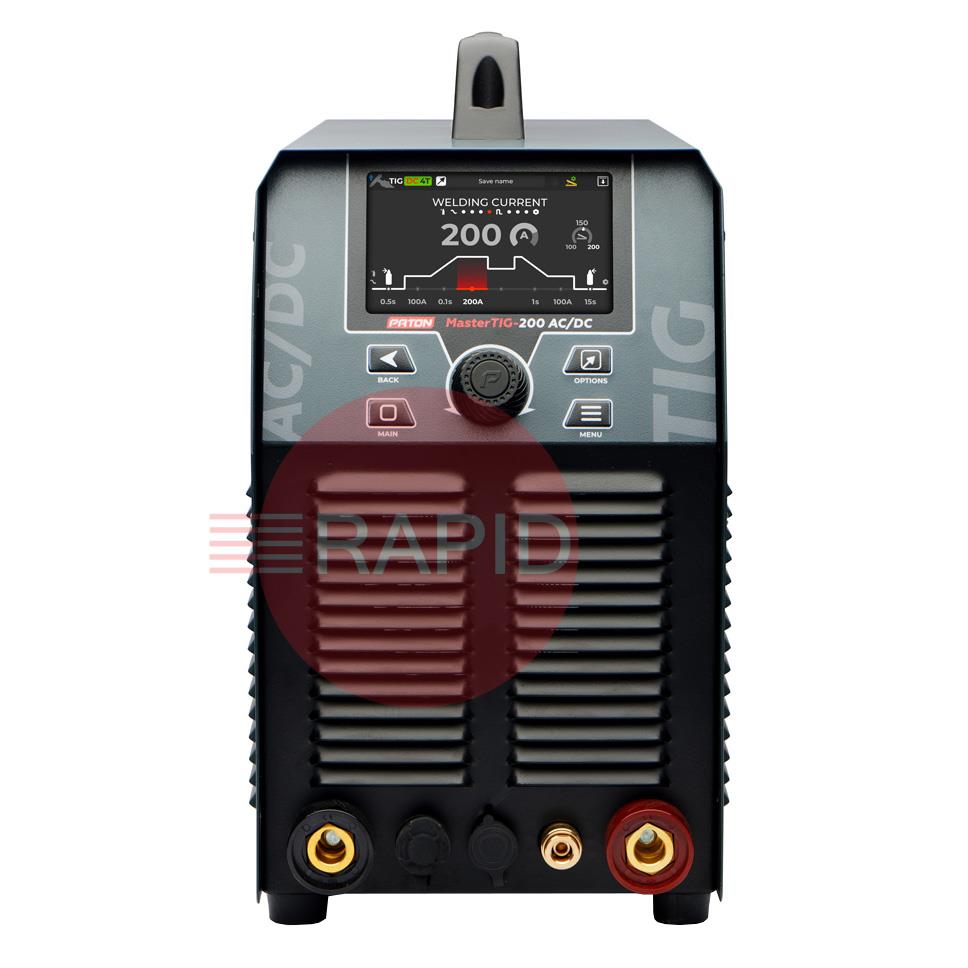 The MasterTIG-200 AC/DC industrial inverter welding machine is designed for welding with constant, alternating, pulse, and pulse-constant currents on a wide range of materials: aluminium, aluminium alloys, steel, non-ferrous metals, and copper alloys (mainly in TIG mode). The machine can also operate in spot welding mode (SPOT) and with coated electrodes (MMA mode). In CLEAN mode, the machine cleans stainless-steel welding parts and their seams of oxides and discolouration, and polishes stainless-steel products. The MasterTIG-200 features a 40% (DC) and 50% (AC) duty cycle, as well as a 3-year warranty.