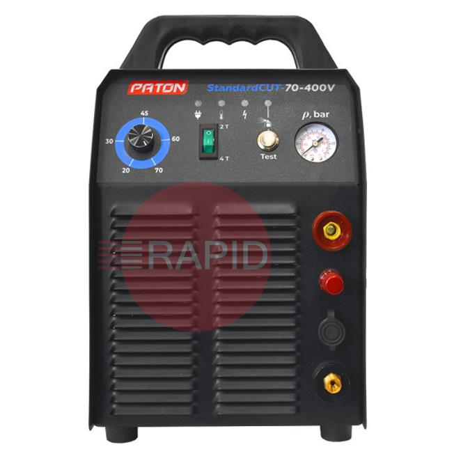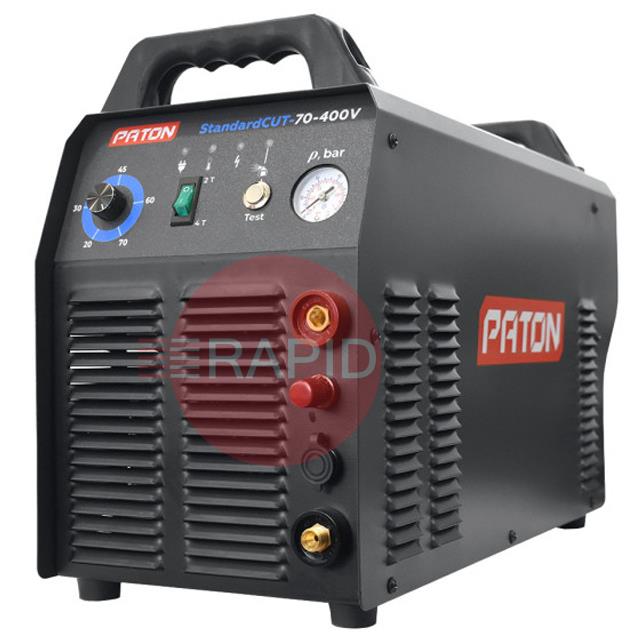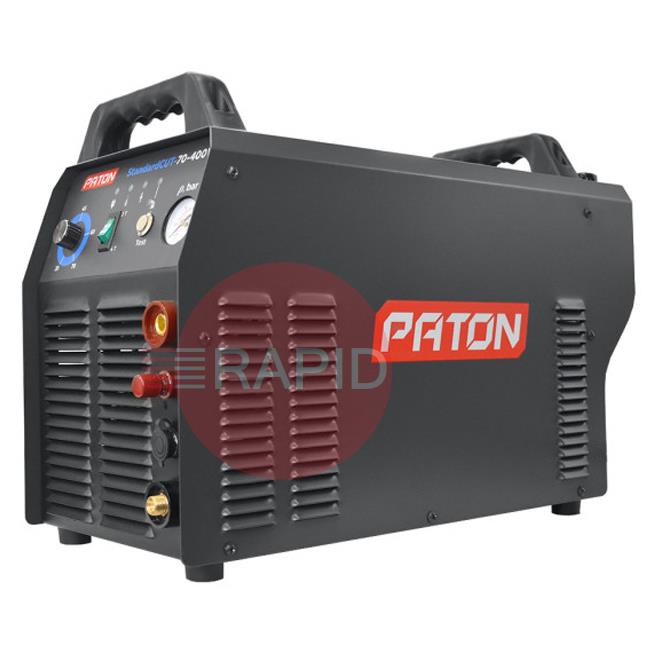 The PATON StandardCUT-70-400V inverter plasma cutter is designed for manual cutting of metals and alloys up to 25 mm thick with a plasma arc in a stream of compressed air. The plasma cutter is lightweight and easy to set up, thanks to its infinitely variable current control, which allows for precise cutting without metal deformation, both in sheet metal and in curved cutting. It is equipped with a pneumatic system with two valves for soft arc ignition with reduced metal spatter, which significantly increases the life of plasma torch consumables. The torch protection system avoids ignition at insufficient air pressure.