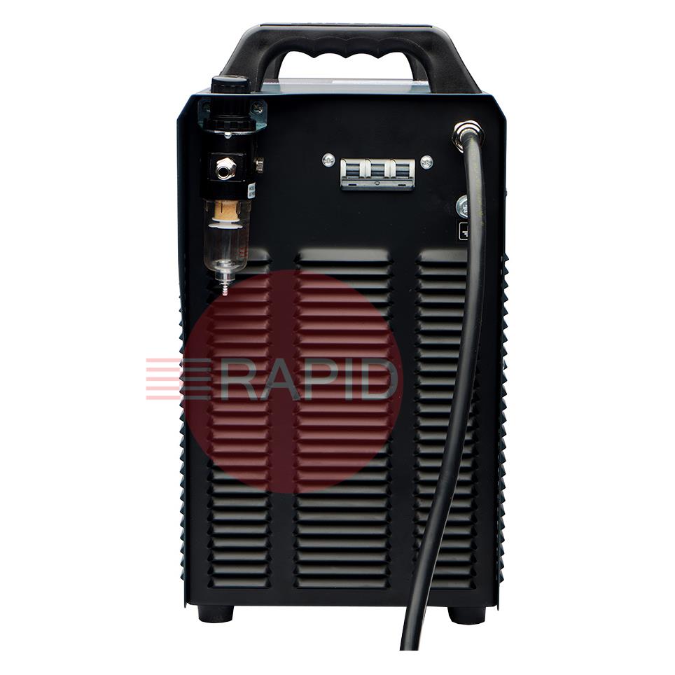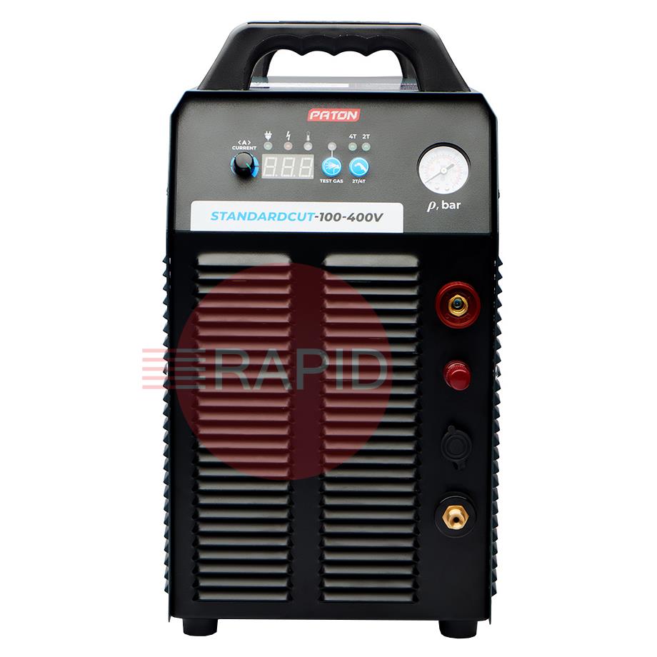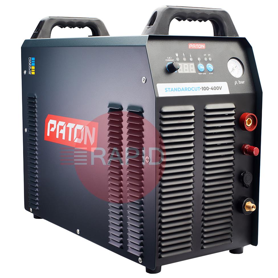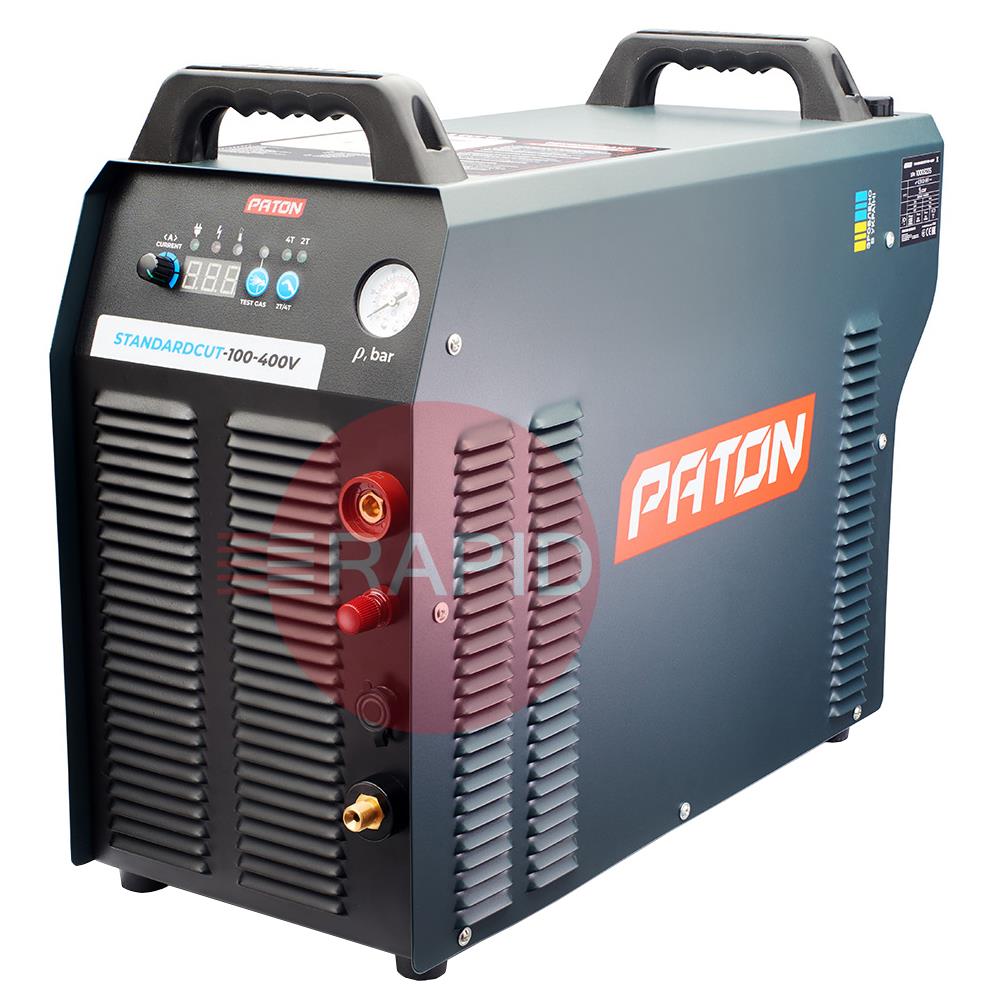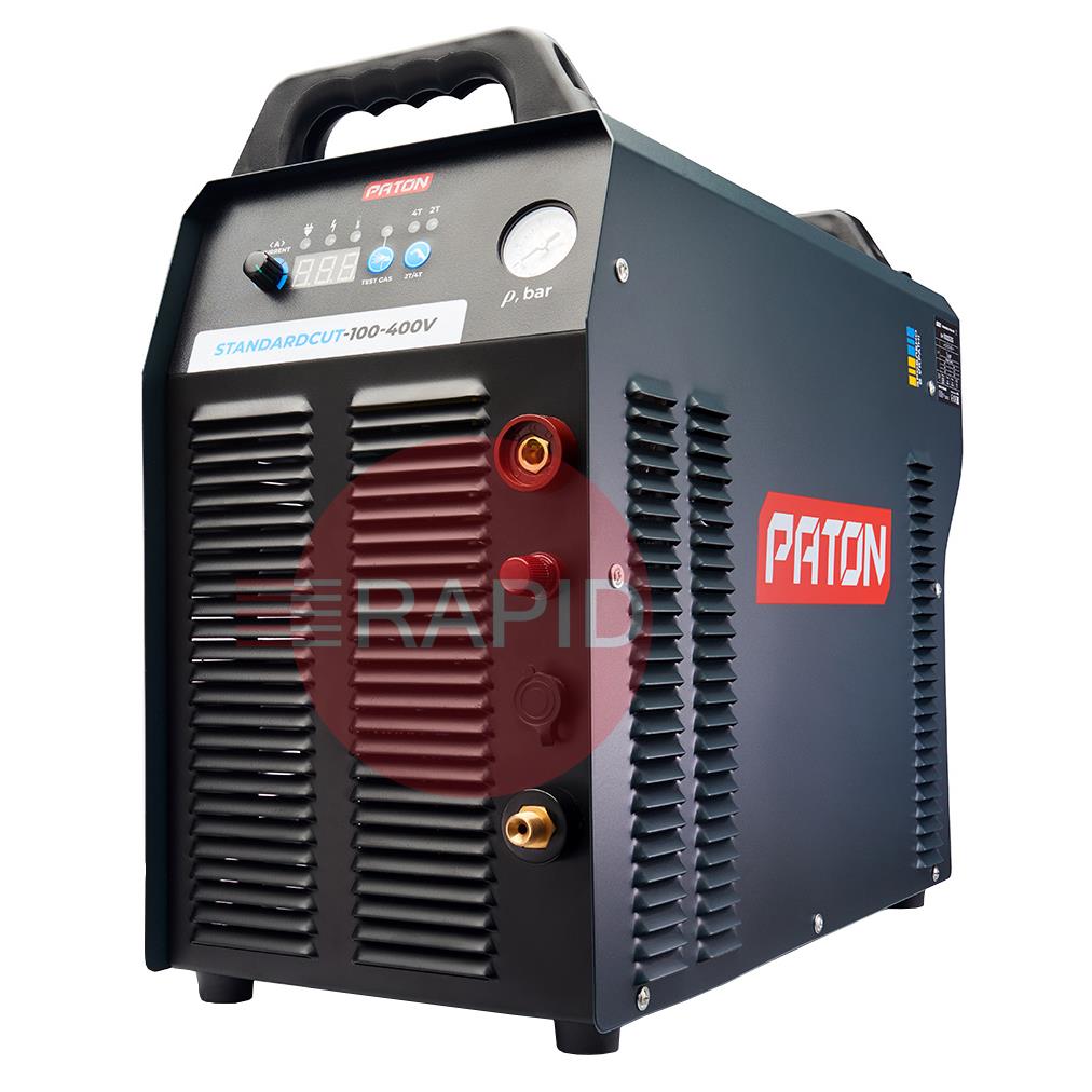The Paton StandardCUT-100 inverter plasma cutter is designed for the manual cutting of metals and alloys by means of plasma arc in an air stream, enabling high-precision cuts to be made in metals of various textures and thicknesses up to 35 mm. A three-phase 400V mains supply powers the “Standard” series, combining high power with ease of use and small dimensions. Due to the inverter's higher frequency, the unit has a lower weight and size than a classic cut-off machine. The unit is equipped with a protective system in the event of insufficient air pressure, as well as a pneumatic system with two valves – for gentle arc ignition with reduced metal spatter and to extend the service life of the plasma torch consumables.