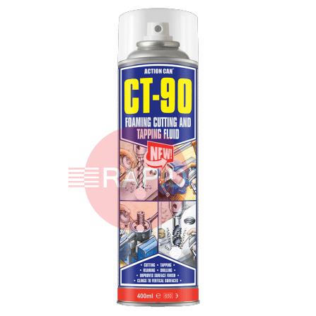 CT-90, the ultimate 4-in-1 versatile cutting lubricant makes metal working easier when cutting, tapping, drilling and reaming. High-performance metal cutting lubricant for use on all tough metals including stainless steel. Specially formulated with excellent extreme-pressure (EP), additives reducing friction and keeping the work-piece at a stable temperature to prevent seizing. Dissipates heat, reducing cutting time, swarf build-up, metal scrap and downtime. Protects and extends the life of the tool. Now available as a foaming lubricant. This eliminates fling-off, clings to drill bits, reduced run-off on vertical surfaces.