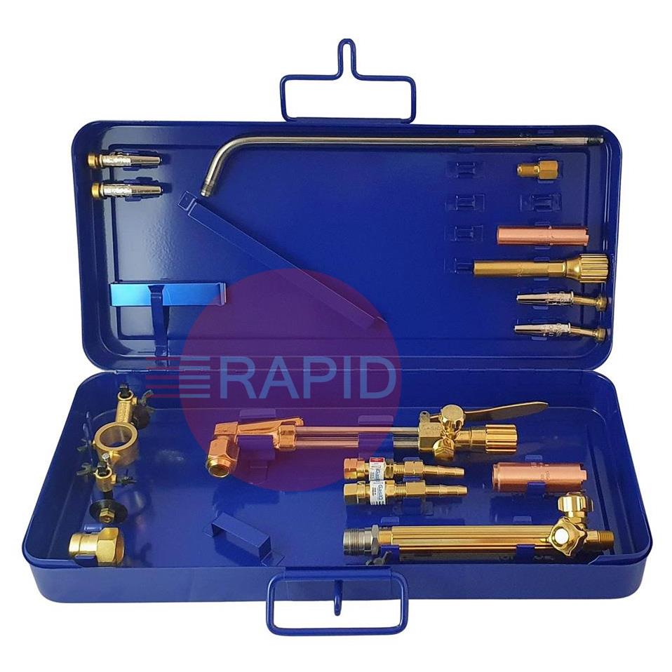 The main component of the 43-2 system is the torch handle with various components for welding, cutting and soldering. All components are interchangeable with other similar torch systems on the market.