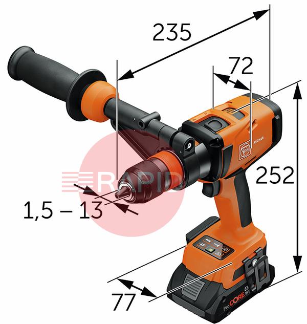 Drill chuck clamping width: 1.5 - 13mm
