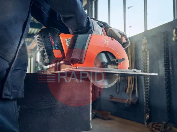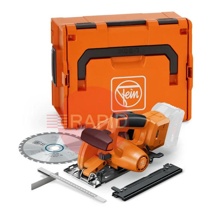 1 circular saw blade for construction steel, 1 guide rail adaptor, 1 swarf collecting vessel (fitted), 1 parallel stop, 1 socket head wrench 5mm and 1 plastic tool case (L-BOXX 238).