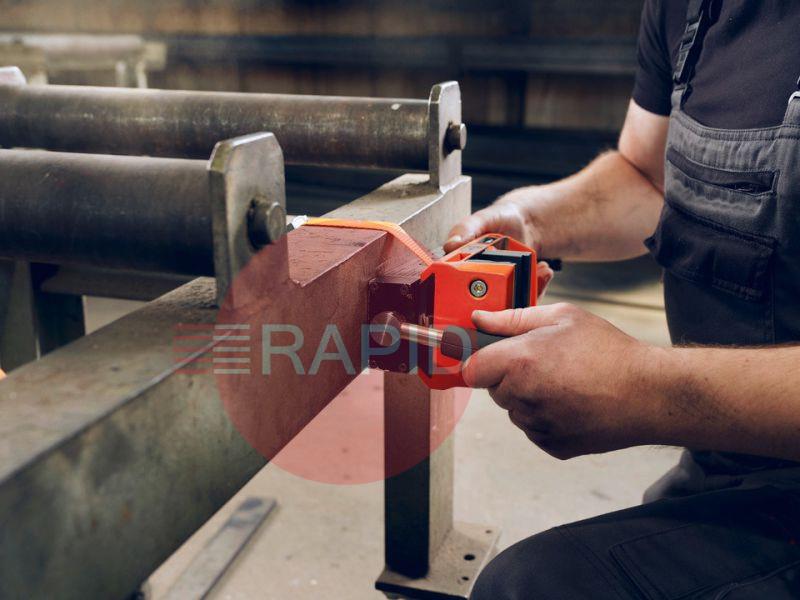 Compact and powerful permanent magnet with a vice for clamping various components on magnetic surfaces without needing any tools.
