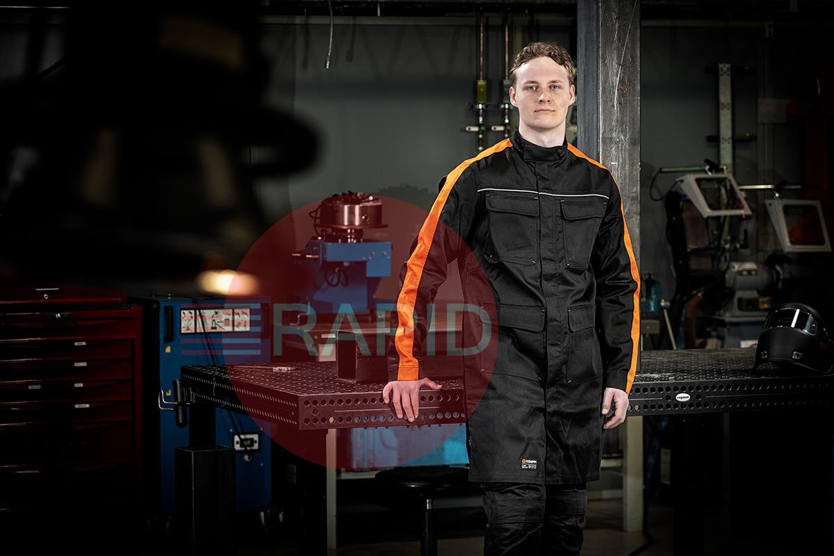 1% carbon fibre. The jacket is certified with welding standards EN ISO 11611,