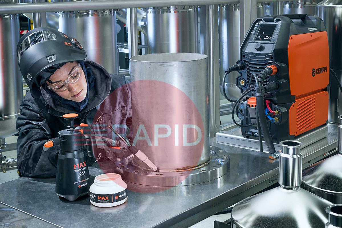 MAX WeldClean lets you complete high-quality welds without using a separate weld cleaning machine. Save time and money by quickly activating cleaning mode for a powerful electrolytic weld cleaning process right after completing a weld. Post-processing the welds has never been so fast!