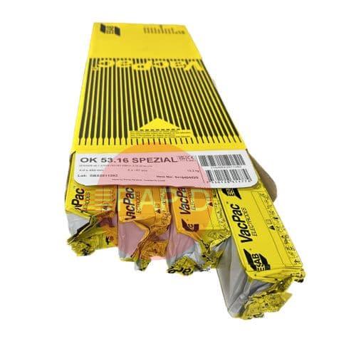 OK 53.16 is a double-coated electrode combining the running characteristics of a rutile electrode with the mechanical properties of a basic electrode. OK 53.16 welds on both AC and DC, with minimal spatter loss.