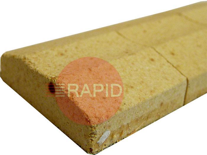 This is for inserting behind plates where there is a taper on the backside of the plate. This tile allows the groove portion to fit snugly against the root. Note that these tiles are square-edged and will not go around a radius. They are meant for flat plates. Again, these tiles are used for M.I.G./M.A.G. welding with all the wires.