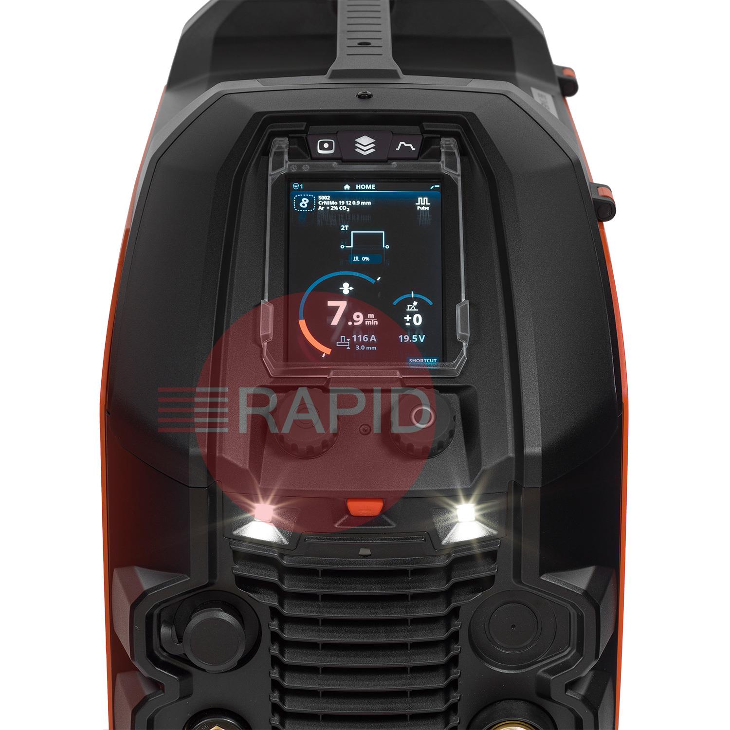 The Master M 358G’s are compact MIG/MAG welders with manual, synergic (Auto), pulse (Auto Pulse), and double pulse welding options. Provides 350 A with a 40% duty cycle. Intelligent welding parameter setting with Weld Assist. Full-colour TFT display with integrated digital connectivity to WeldEye and LED work lights for excellent user experience. Includes work pack welding software programs including Fe, Ss, Al, CuSi, CuAl, Fe Metal, Fe Rutile, and FC-CrNiMo materials. Suitable for generator use.
