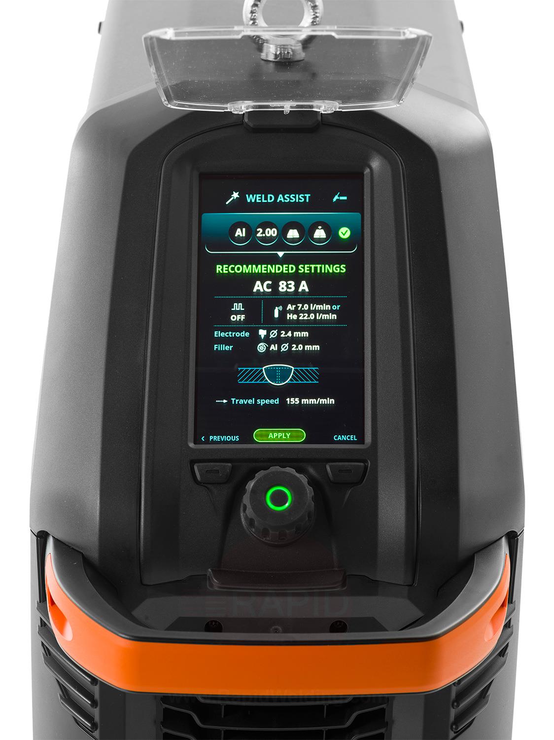 Protected by a 3mm armour shield plate, the 7" TFT control panel is both impact and scratch resistant, allows fast and accurate parameter setting with WeldAssist, and offers 99 memory channels per process to save the best parameters or WPS values.