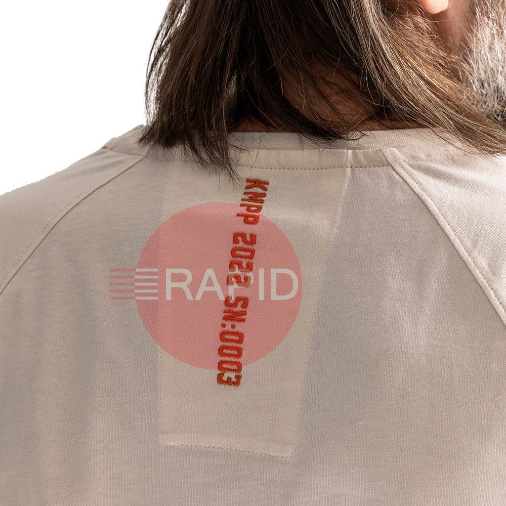 Kemppi Wear model 0003. A high quality, classic long-sleeved round neck T-shirt for men. Inspired by casual leisurewear and the demanding world of welding. Comfortable raglan sleeves. Soft, yet durable jersey knit material made from flame-retardant fabric with 55% modacrylic, 33% cotton, 10% polyamide and 2% antistatic agent. Available in dark grey with black print and sand with grey print. Not certified to welding standards.