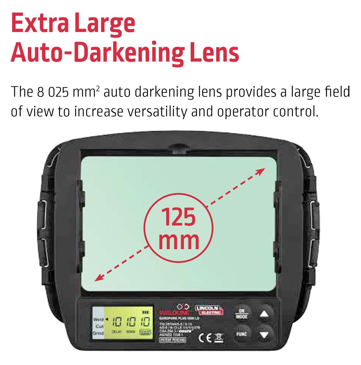The Europure PLUS 5500 LS offers the highest level of respiratory protection thanks to the smart blower system, an integrated grind shield, side windows and an extra-large 8025mm² auto-darkening lens, designed with Lincoln exclusive light shade technology and 1/1/1/1 optical clarity ungraded.