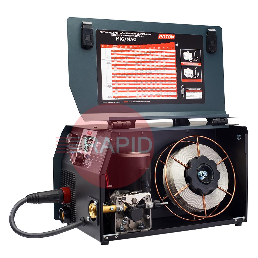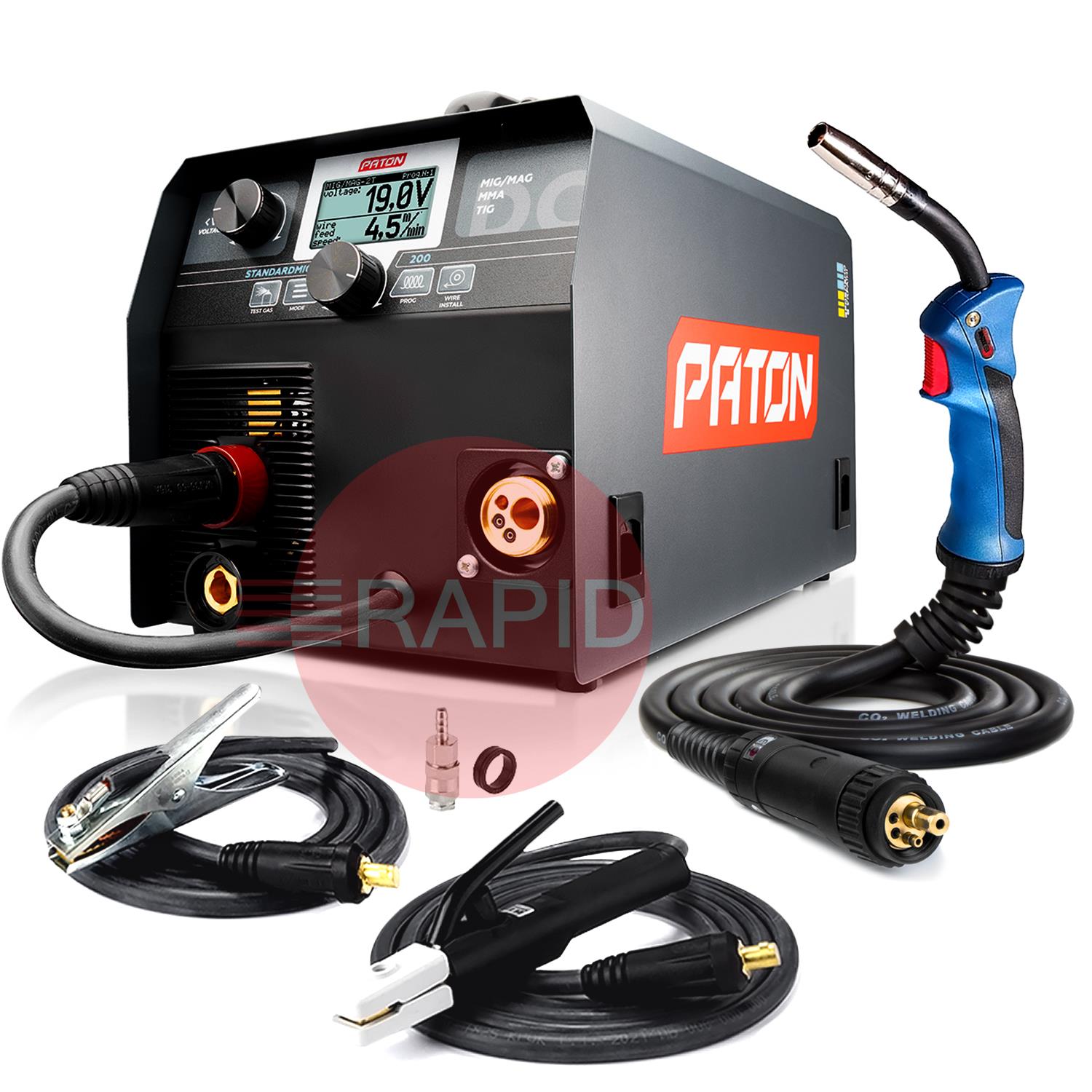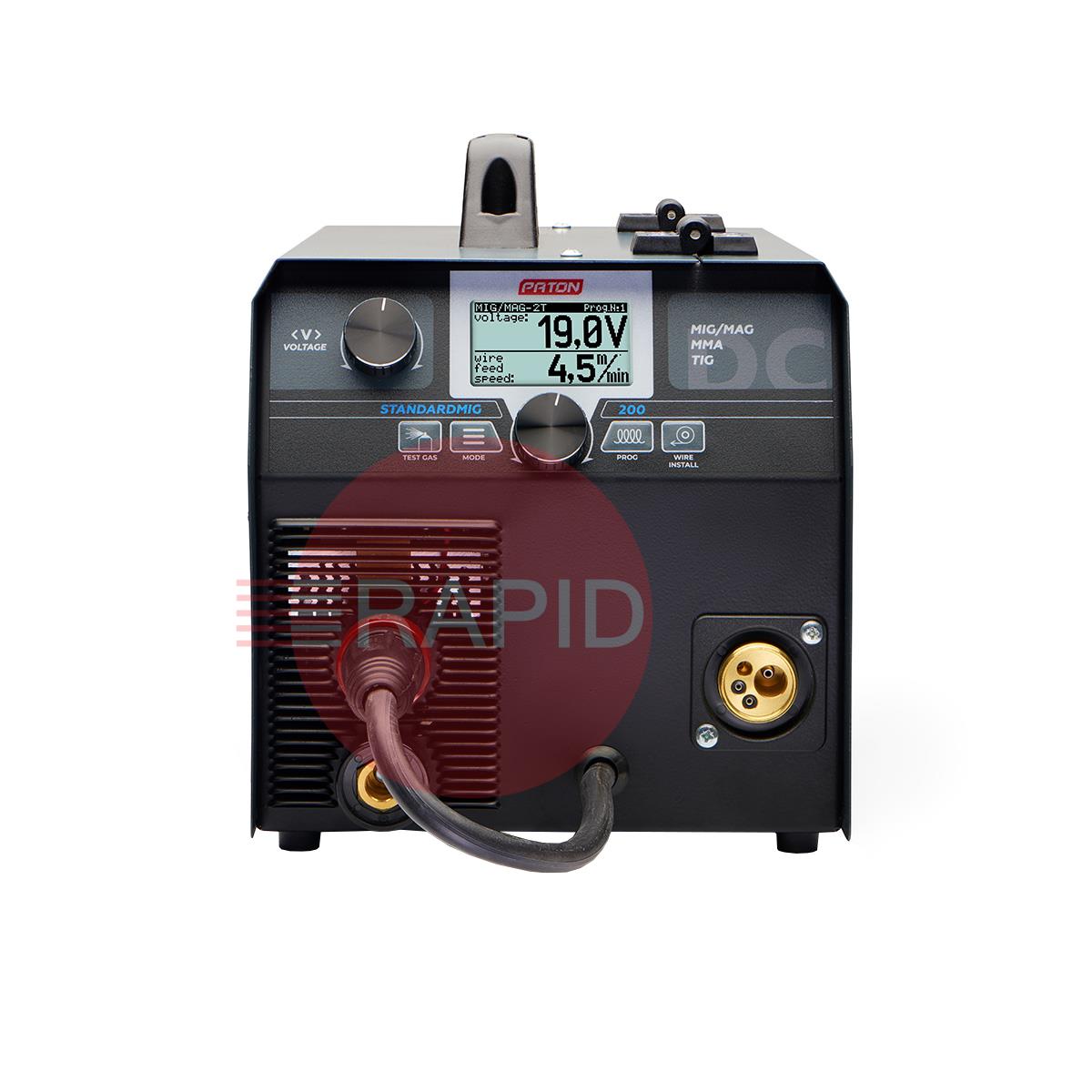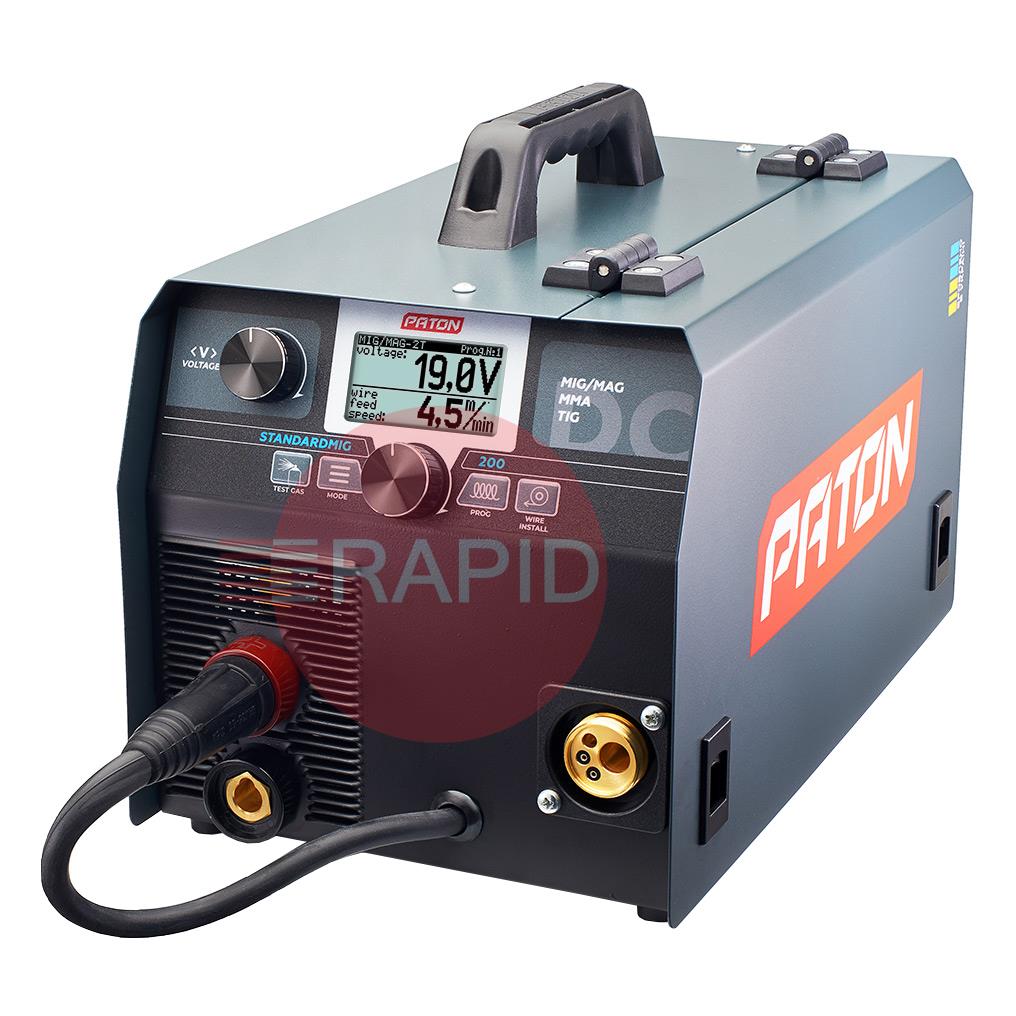 The Paton StandardMIG 200 MIG/MAG MMA/TIG Lift welder inverter is designed for semi-automatic MIG/MAG arc welding, gas shielded TIG arc welding and manual MMA arc welding with direct current (DC), with the possibility of using the PULSE function. The StandardMIG 200 features a 45% duty cycle and a 5-year warranty.
