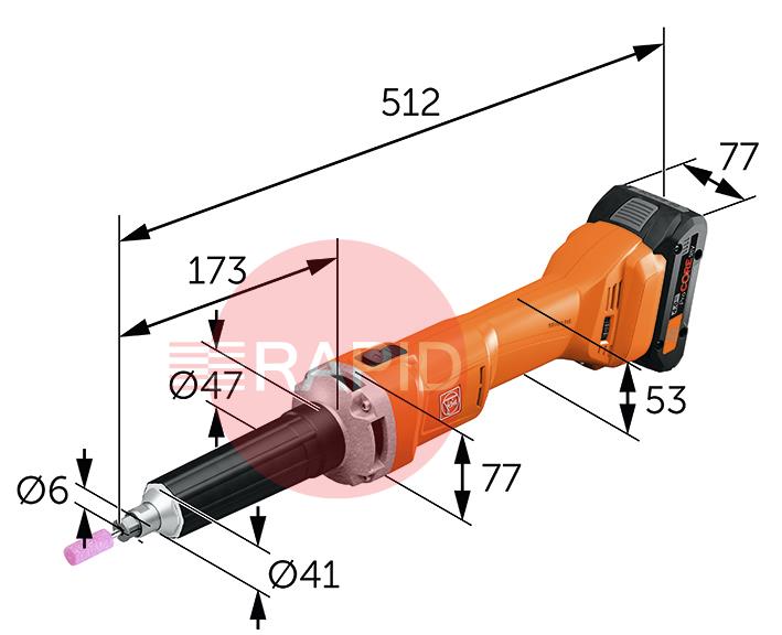 • 71230661000  FEIN AGSZ 18-90 LBL AS Cordless 18V Long Neck Die Grinder, with 2,900 – 9,000 RPM (Bare Unit)