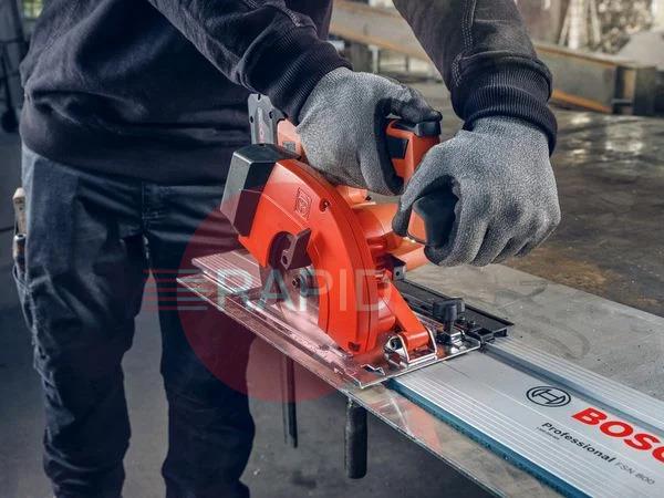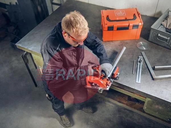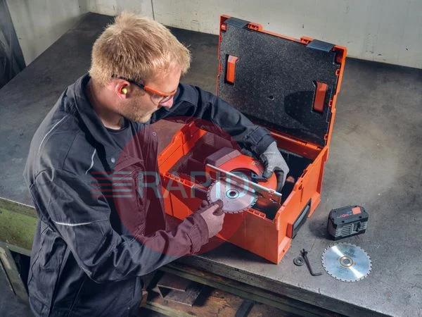 1 circular saw blade for construction steel, 1 guide rail adaptor, 1 swarf collecting vessel (fitted), 1 parallel stop, 1 socket head wrench 5mm and 1 plastic tool case (L-BOXX 238).