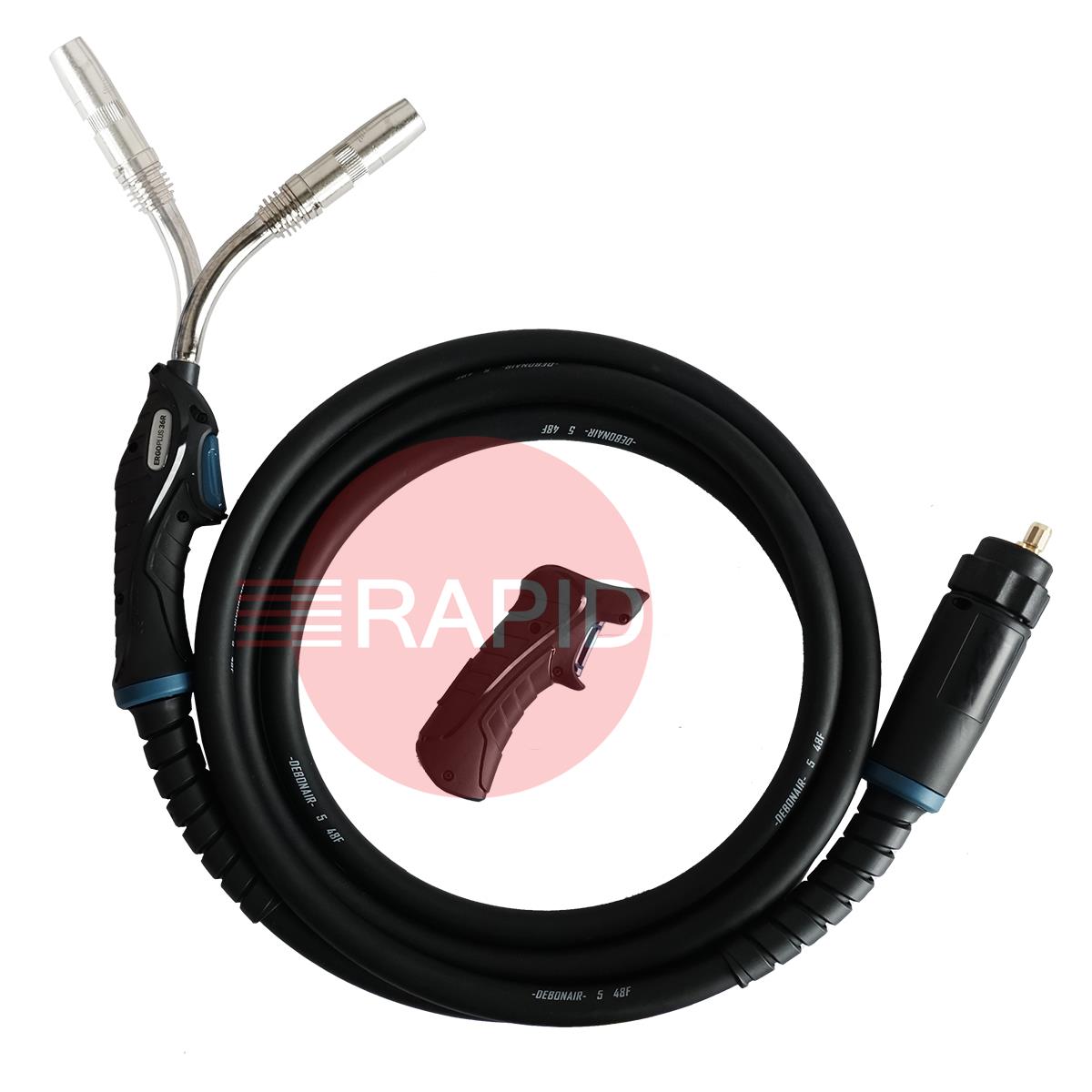 • ERGOPLUS36R  Trafimet ERGOPLUS 36R Rotatable 45° Neck Air Cooled MIG Torch w/ Euro Connection, 330A CO2, 300A Mixed Gas